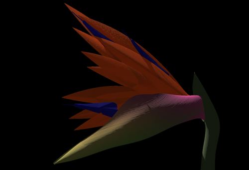 One function that made me happy was that I was able to convert each object to polygon based objects. This flower is called "Birds in Paradise". I had never seen this flower before I came to Texas. This particular image was rendered on PowerMac 8500 with fairly good amount of RAM, around 65MB.